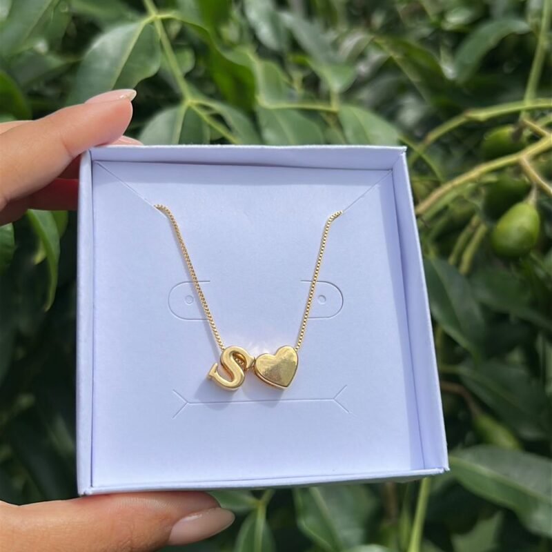 Colar Personalizado Letra e Coração Banho Ouro18k