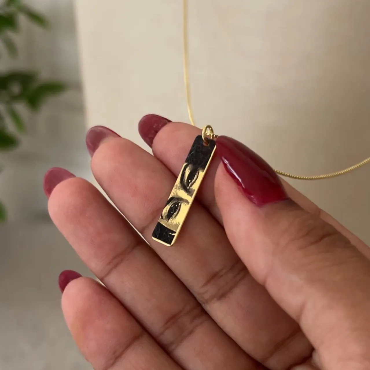 Colar olhar Personalizado Plaquinha Banho Ouro 18k