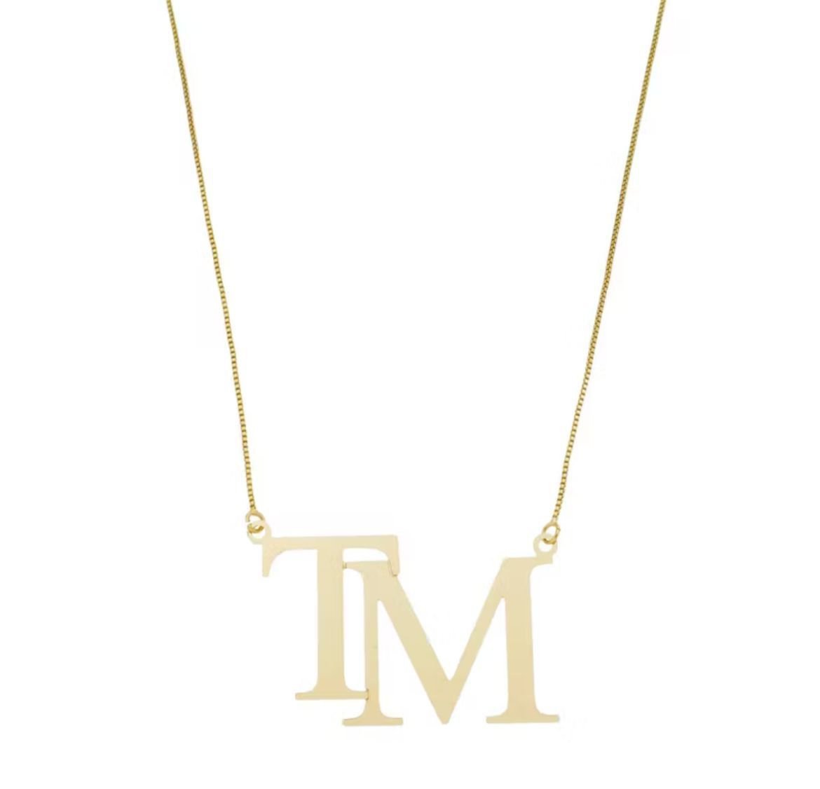 Com banho de ouro 18K, acabamento hipoalergênico e letras de 2 cm, ele une brilho, elegância e exclusividade em uma joia personalizada da Dalú Semijoias & Pratas.