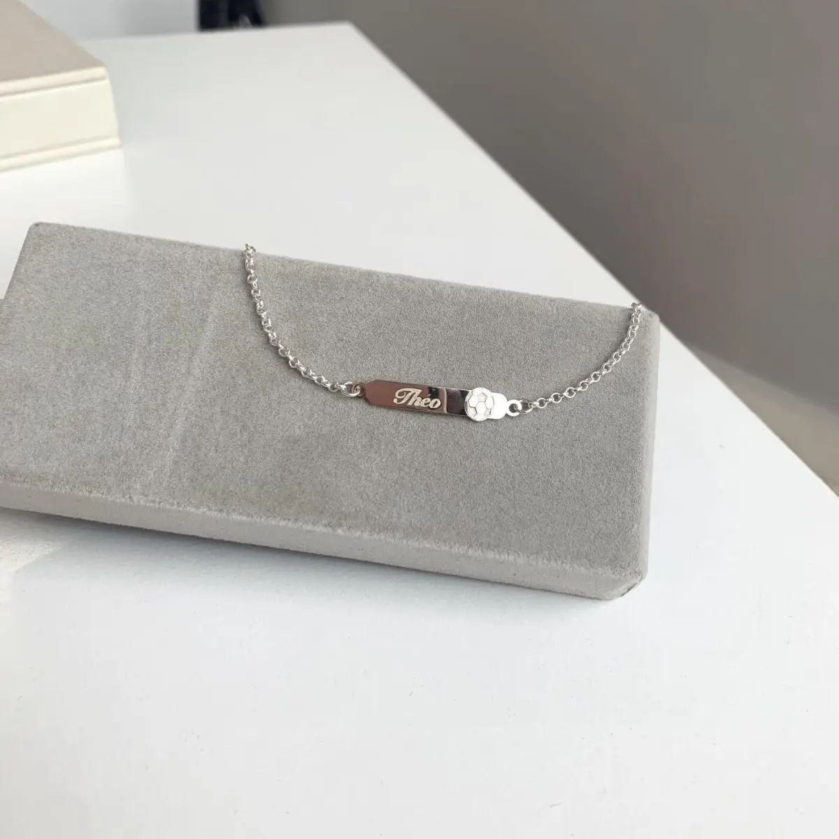 Nossa peça personalizada em Prata 925 legítima é feita sob medida para você eternizar nomes, datas, iniciais ou símbolos que representam sua história.